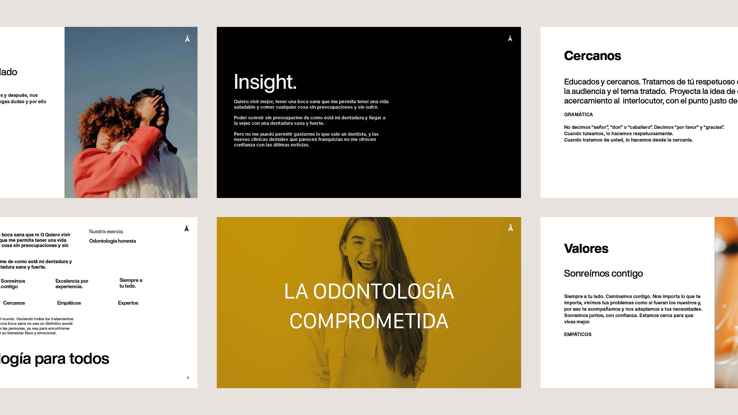 Witizz es una compañía emergente dentro del sector de la odontología, nace en Madrid con el propósito de acercar la salud dental a todo el mundo. Haciendo sus tratamientos más accesibles, para mejorar la vida de las personas a través de una boca sana. La entidad contactó con Esteve Durbá para conducir la estrategia de marca e identidad visual de este nuevo e innovador proyecto. Una nueva forma de entender la odontología. En primer lugar, se llevó a cabo la búsqueda de un nombre que lograra mostrar los valores que abanderan a la compañía: la honestidad y empatía con todos sus clientes. Terminado el proceso de naming se creó la marca, siguiendo todos estos valores. Mostrando a través de esta una compañía cercana con sus clientes, que acompañará y ayudará a éstos durante todo el camino hasta conseguir la sonrisa que siempre han deseado. De esta forma, se diseñó el isotipo con nuestra uvedoble representando la mínima expresión de una sonrisa. Nuestra sonrisa es la de nuestros clientes. Además, a partir de este isotipo se creó todo un universo de marca donde la sonrisa en movimiento se integra perfectamente en todas las aplicaciones, otorgando dinamismo y frescura a estas.